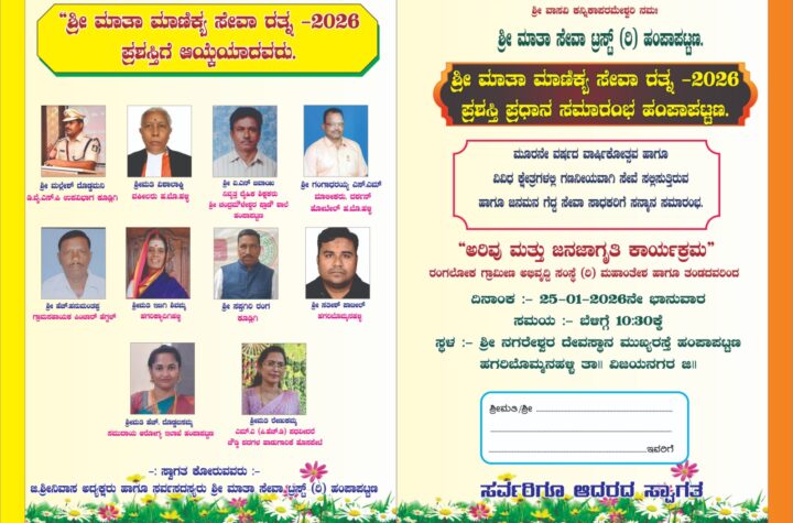 ಜೂಡಿ ನ್ಯೂಸ್ : ಹಗರಿಬೊಮ್ಮನಹಳ್ಳಿ ತಾಲೂಕಿನ ಹಂಪಾಪಟ್ಟಣ ಗ್ರಾಮದ ಶ್ರೀ ನಗರೇಶ್ವರ ದೇವಸ್ಥಾನದಲ್ಲಿ 25-01-26 ರಂದು ಶ್ರೀ ಮಾತಾ...