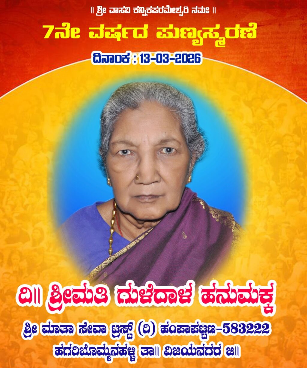 – ಜಿ ಶ್ರೀನಿವಾಸ ಅಧ್ಯಕ್ಷರು ಶ್ರೀ ಮಾತಾ ಸೇವಾ ಟ್ರಸ್ಟ್ ಹಂಪಾಪಟ್ಟಣ.